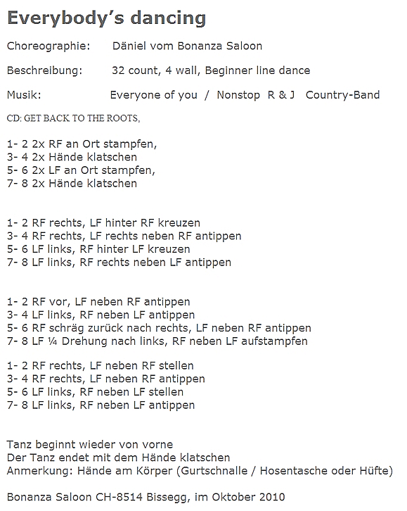Repertoire beinhaltet Titel für die nachfolgenden Linedances